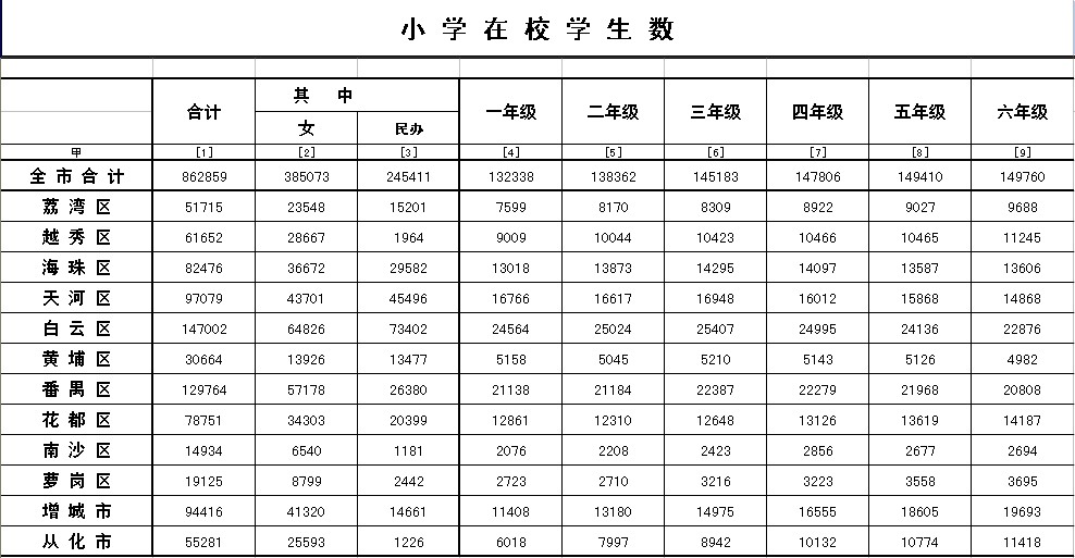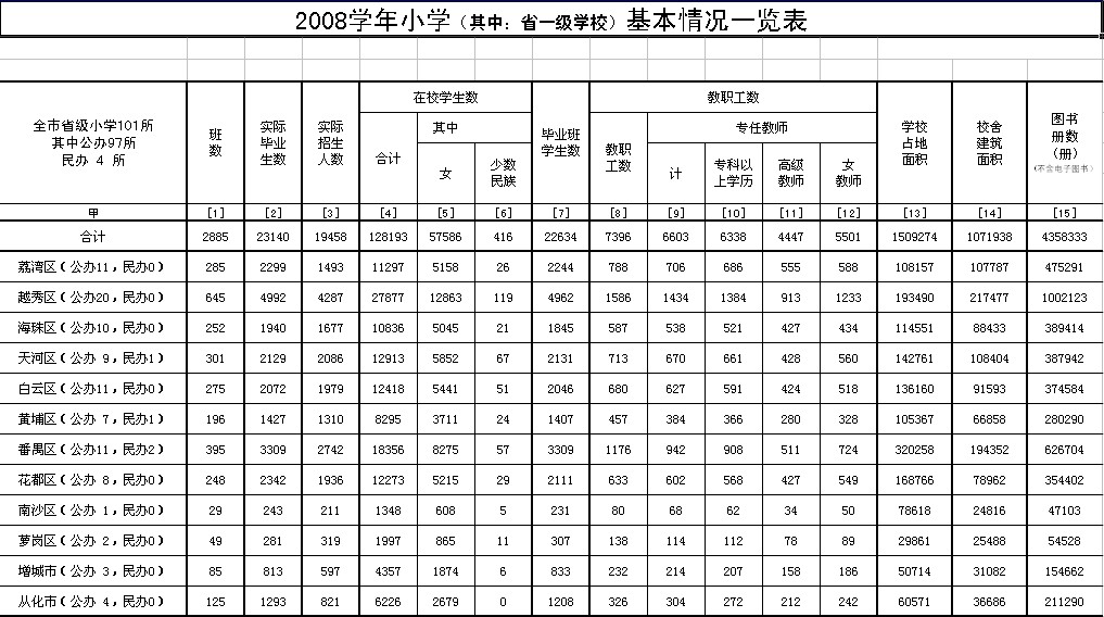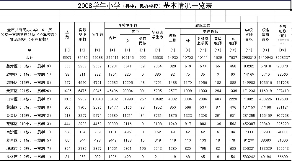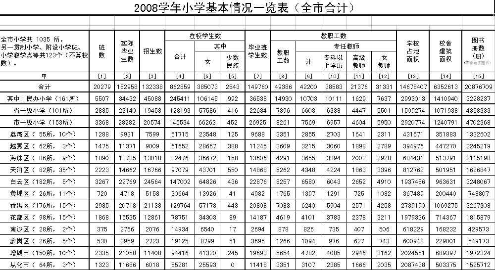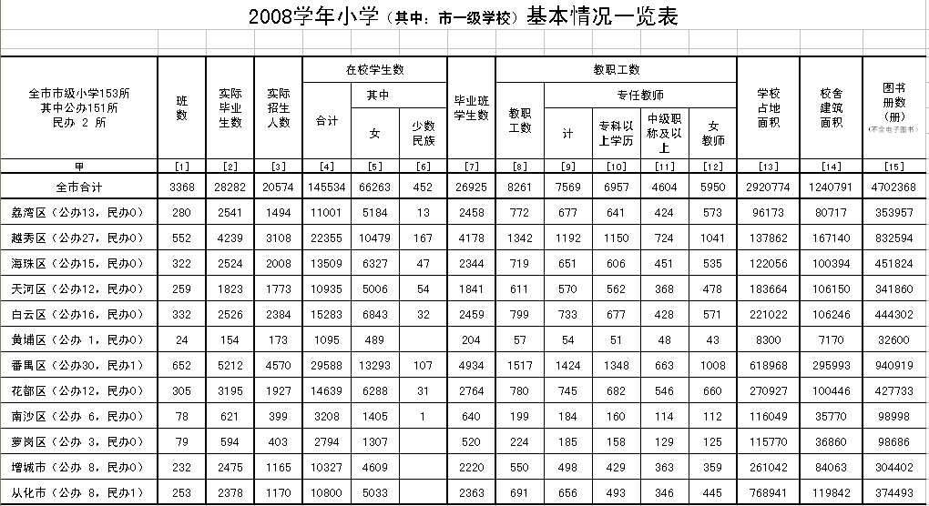 2008广州市小学教育情况